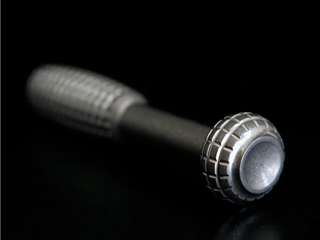 Titánový povrch Stonewashed: Matný povrch s valcovaním dodáva každému nástroju charakteristický, opotrebovaný vzhľad a zároveň účinne zakrýva škrabance a odtlačky prstov. Každý kus si časom vyvinie svoj vlastný jemný vzor opotrebovania, čím zvýrazňuje jeho individuálny charakter.