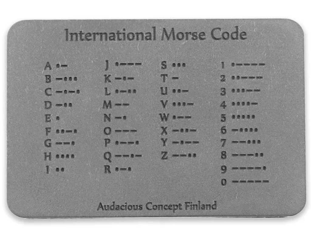 Nášivka Morseovky z titánu je elegantný a odolný doplnok k vášmu oblečeniu na každodenné nosenie (EDC). Táto nášivka s rozmermi 45 mm na šírku a 30 mm na výšku obsahuje laserom gravírovanú abecedu Morseovky vo výraznom, lesklom čiernom prevedení, ktoré krásne kontrastuje s titánovým pozadím s efektom washed. Táto nášivka je ideálna pre tých, ktorí oceňujú nadčasovosť Morseovky a dodáva vášmu oblečeniu, bunde alebo taške funkčnosť aj štýl.