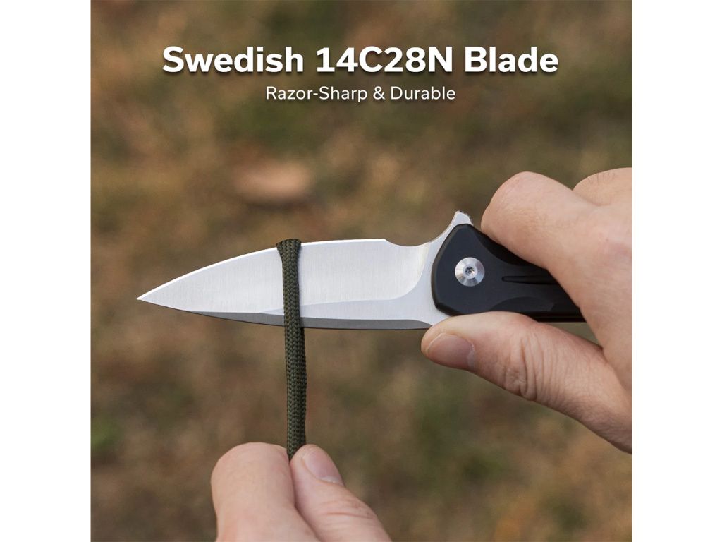 Intuitívny Button Lock zámok drží čepeľ bezpečne a zároveň umožňuje plynulé ovládanie jednou rukou a možnosti nosenia pre pravákov a ľavákov zvyšujú všestrannosť.