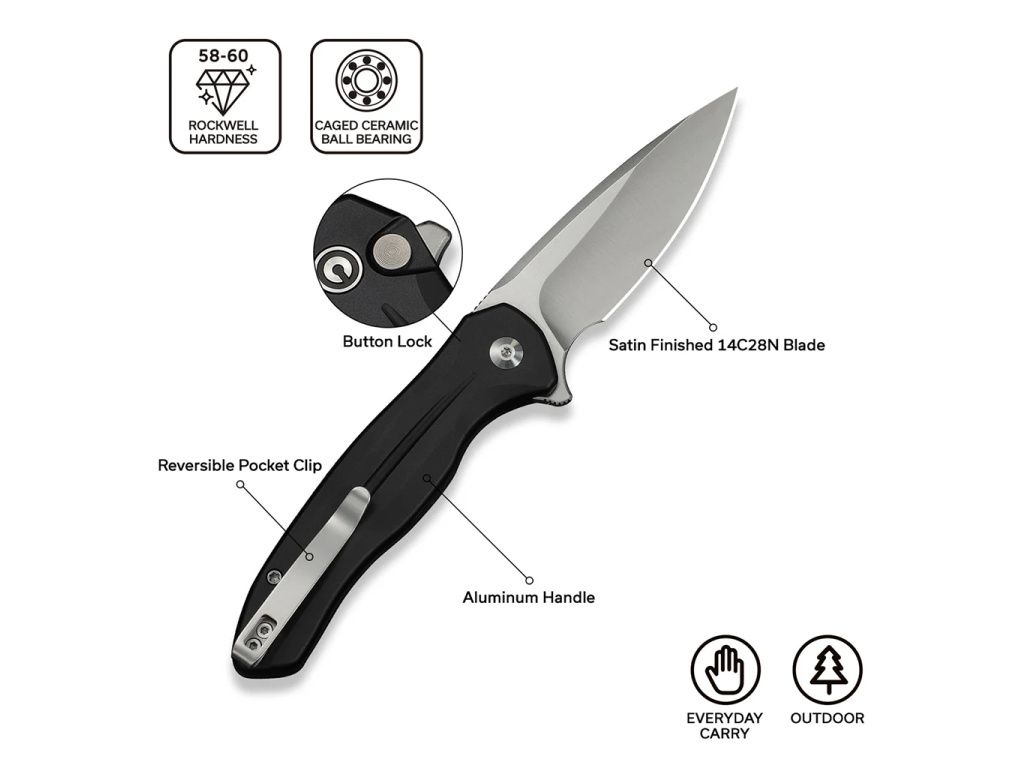 Civivi Kitefin Black Aluminium Handle C24091-1