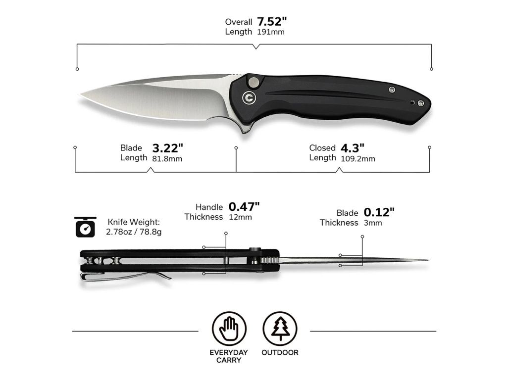 Civivi Kitefin Button Lock je ideálny nôž na každodenné nosenie, ktorý spája kompaktné rozmery a spoľahlivú užitočnosť. Jeho profil čepele drop point poskytuje široký praktický dosah, zatiaľ čo vyvážené, ergonomické rozloženie pôsobí prirodzene, či už ide o vedenie jemných rezov alebo zvládanie ťažších prác.