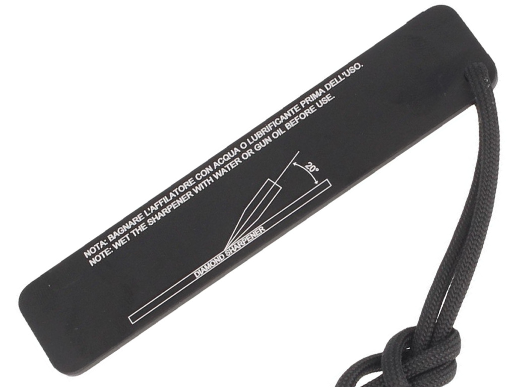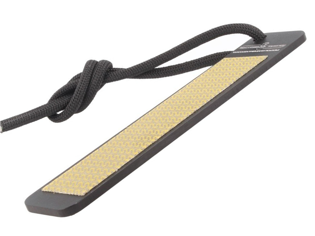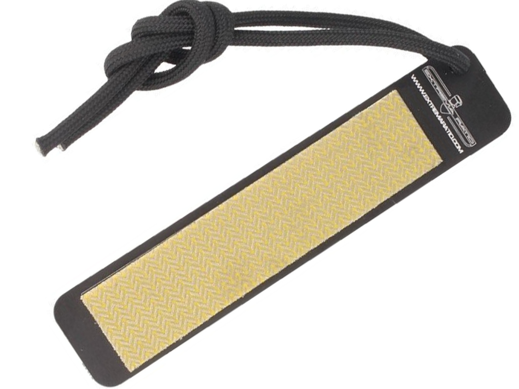 Malá šikovná bruska na nože, kterou můžete nosit s sebou nebo dokonce na šňůrce na noži, je skutečným bonusem. Kapesní diamantová bruska Extrema Ratio udrží vaše nože ostré, dokud nebudete mít k dispozici plnohodnotnou brusnou sadu. Na jedné straně je diamantová bruska a na druhé straně naleznete užitečnou ilustraci a jednoduché instrukce k používání brusky. Rozměry: 12 cm x 2,5 cm x 0,3 cm
