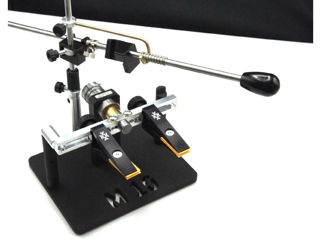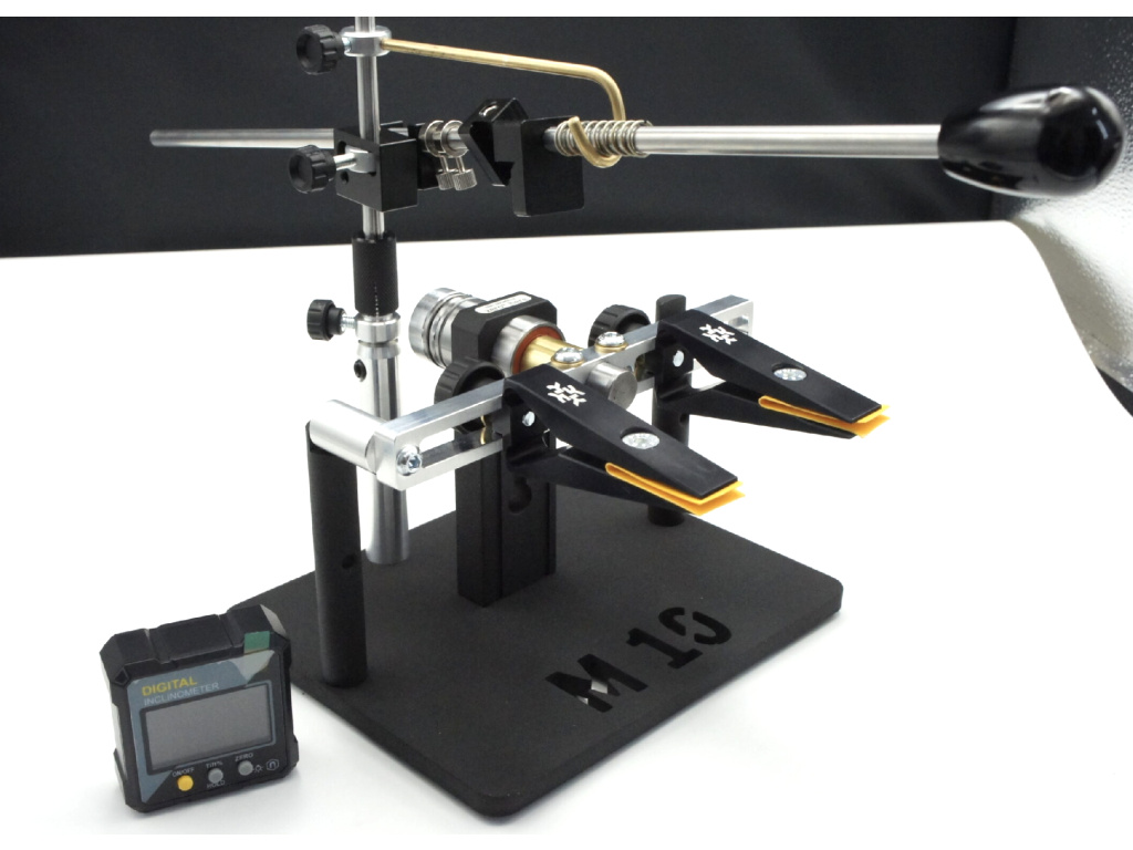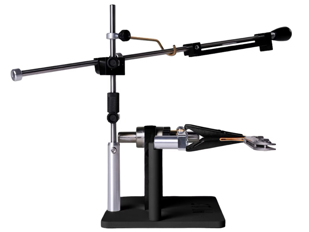 Brusný systém je určen k broušení kuchyňských, mysliveckých, zavíracích nožů různých tvarů a velikostí. Díky precizní a stabilní fixaci nože ve svorkách přístroje, jakož i možnosti převrátit nůž, aniž byste jej vybrali ze svorek, je ostření rychlé, jednoduché a nevyžaduje speciální dovednosti obsluhy. Úhel ostření se mění zvednutím nebo spuštěním sestavy závěsu podél vertikálního stojanu.