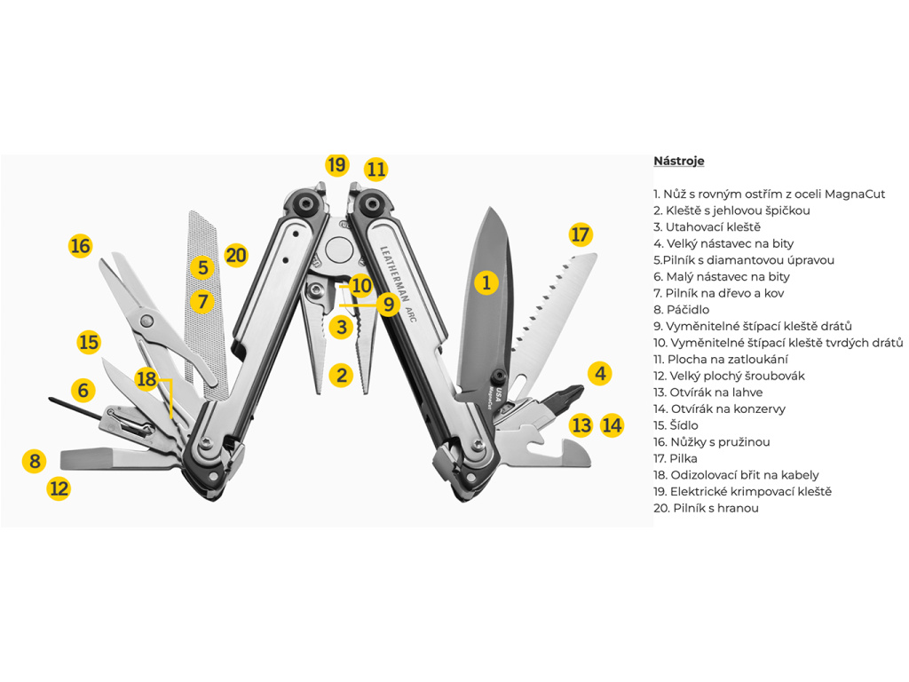 S 20 nástroji, odnímatelným kapesním klipem nastavuje odolný a praktický Leatherman ARC nový standard pro prémiové multifunkční nástroje.
