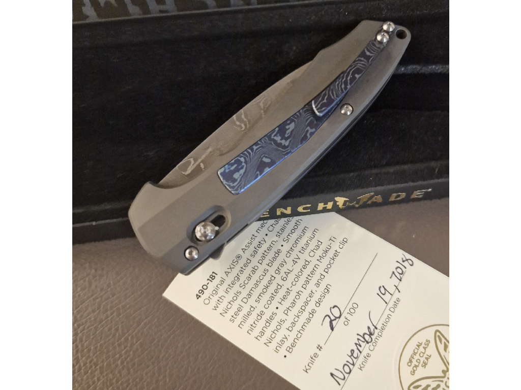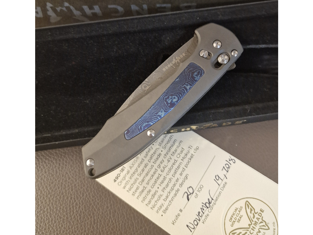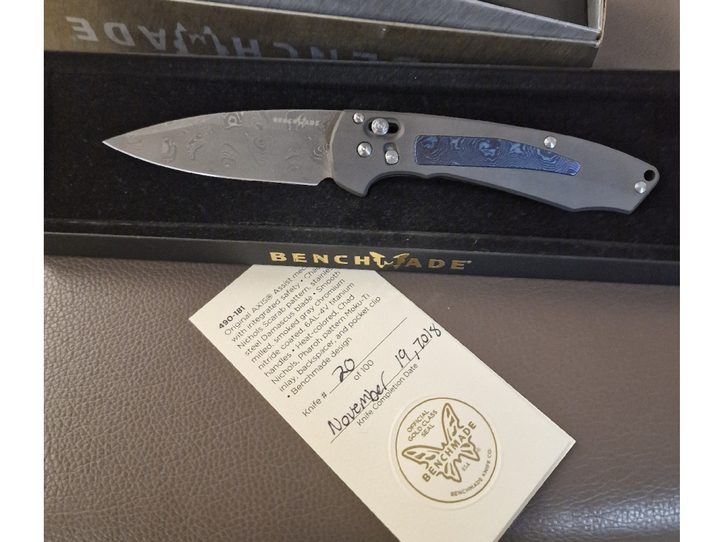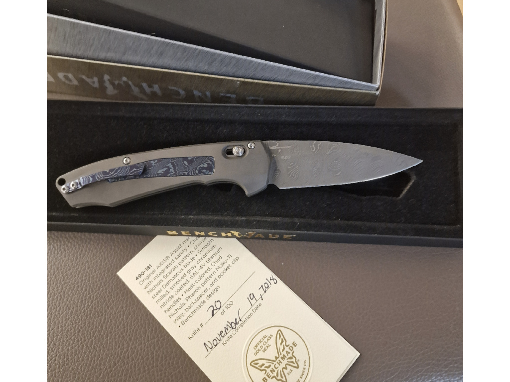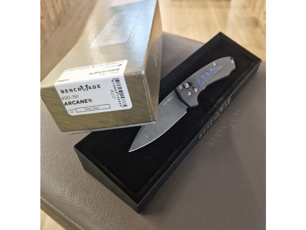 Your wait is finally over....the most innovative and remarkable knife is here with something premium in the benchmade lineup then the Benchmade Arcane is the one to choose. With its 3.20" blade made from the rare Damascus steel with texture on the blade in black and the handle made from the top notch Titanium with blue detailing, it gives out a premium look! With the AXIS lock mechanism, which makes the knife easy to open and close for right and left hand users. For an added measure of protection, Benchmade has included a front-mounted safety lock. Adding even more draw to the Arcane knife, is the super premium Chad Nichols damascus steel blade.