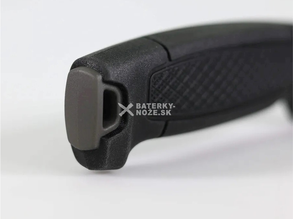 Carbon steel with black DLC coating and Scandi grind - The 109 mm long blade is 3.2 mm thick and made from German carbon steel (C100S) with a black DLC coating that protects against corrosion and reduces reflections. The blade has a hardness of 57.5 HRC and a classic Scandi grind that provides a durable edge with long-lasting sharpness and easy maintenance in the field.