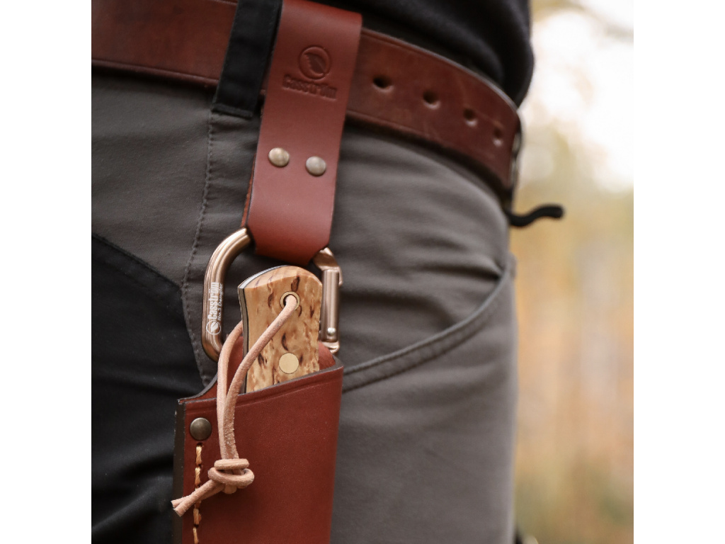Mnohí Casström zákazníci mali požiadavku na predĺženú slučku na opasok, "háčik" tak, aby bol nôž ľahko prístupný aj keď nosíte bundu alebo veľký batoh s bedrovým pásom.