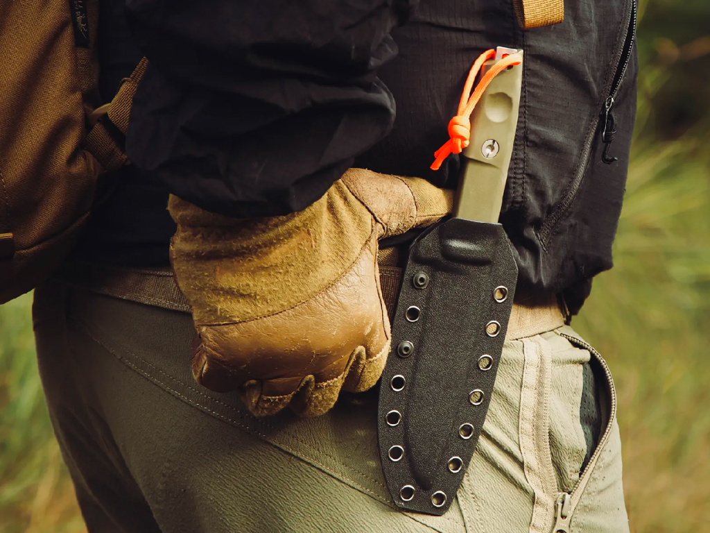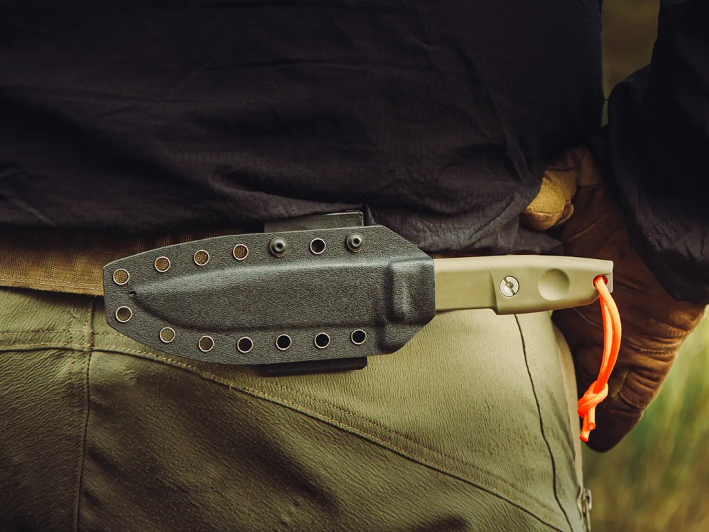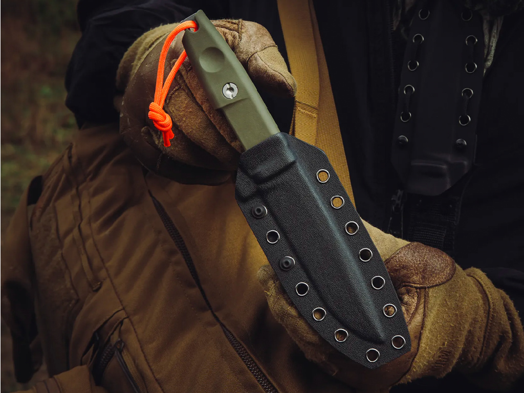 Systém dopĺňa tepelne tvarované puzdro z kydexu, ľahké a odolné, ktoré neabsorbuje vodu a nevyžaduje si žiadnu zbytočnú údržbu.