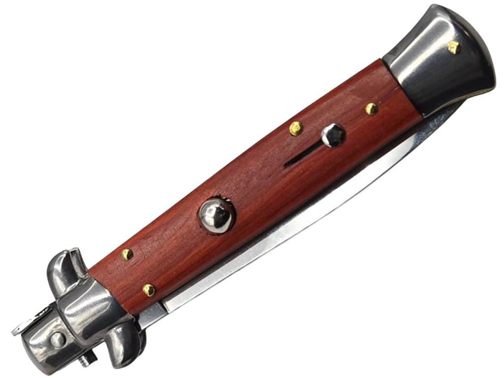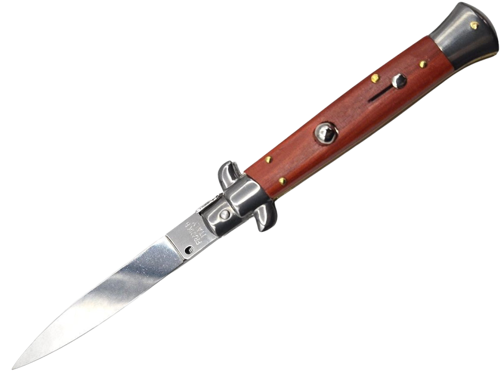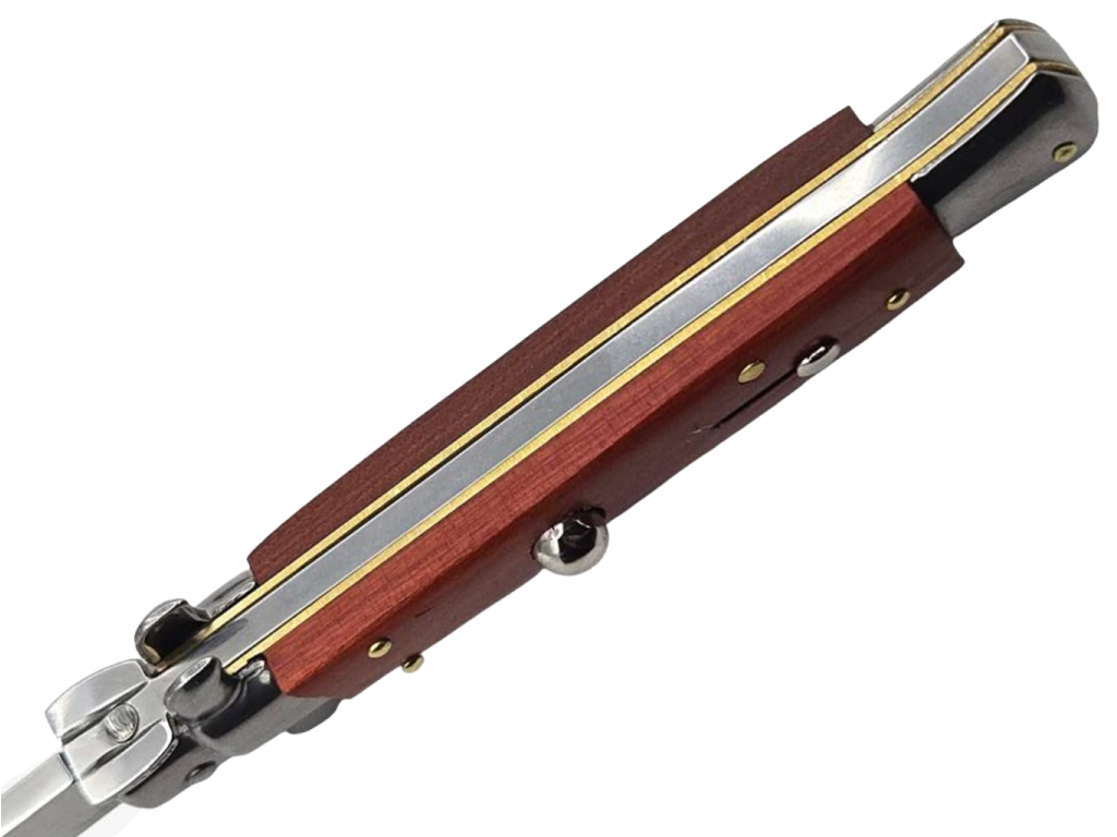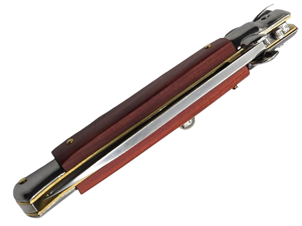 Nôž Stiletto Switchblade Bayonet je elegantný a funkčný pružinový nôž od renomovanej značky Frank Beltrame. Bol starostlivo navrhnutý a kombinuje výnimočnú estetiku s vynikajúcou funkčnosťou. Tento nástroj sa vyznačuje nielen viac ako polstoročnou tradíciou výrobcu v ručnej výrobe vysokokvalitných nožov, ale aj jedinečnou rukoväťou zo svetlého olivového dreva, ktorá mu dodáva jedinečný charakter. Pružinový otvárací mechanizmus umožňuje takmer okamžité vyskočenie čepele.