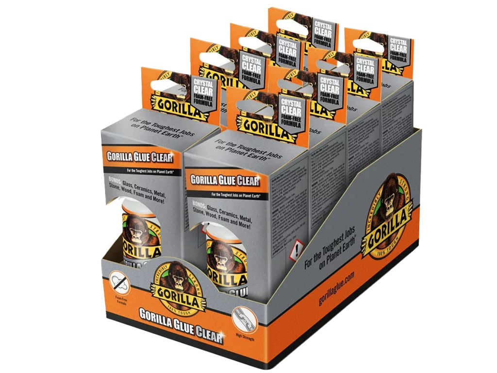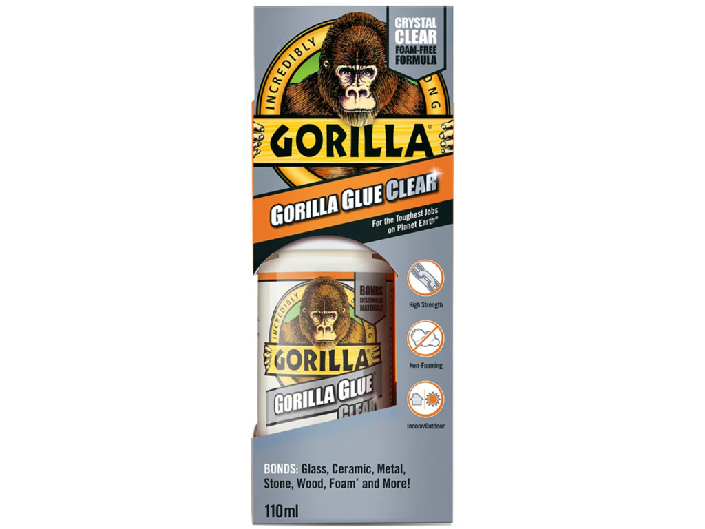 Gorilla Glue Clear – krištáľovo čisté, extra silné a vodoodolné lepidlo na takmer akýkoľvek povrch. Ideálne pre vnútorné aj vonkajšie použitie tam, kde záleží na pevnosti aj vzhľade spoja.