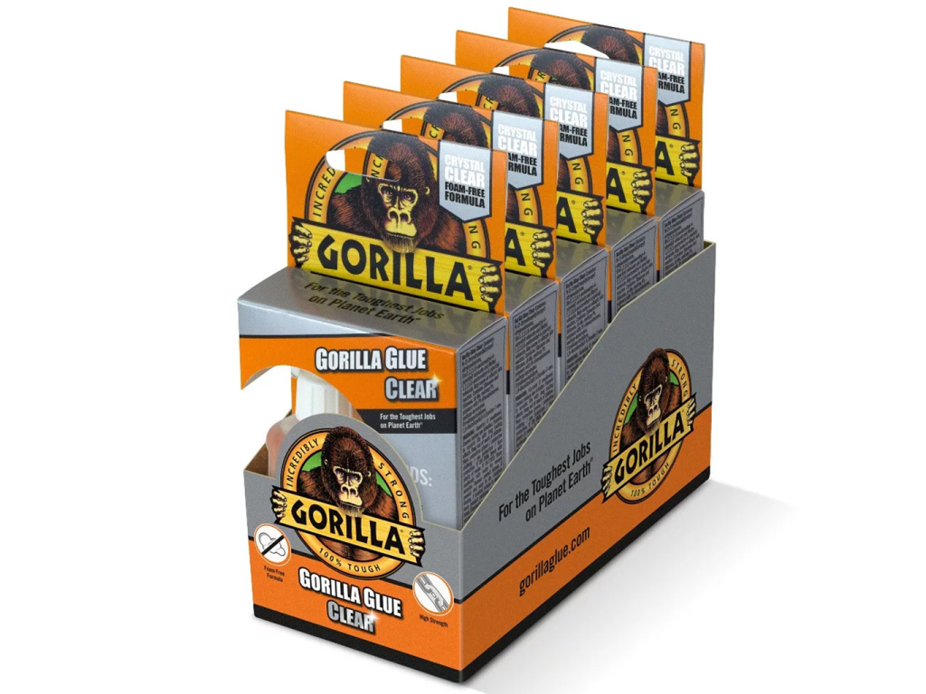 Gorilla Glue Clear – krištáľovo čisté, extra silné a vodoodolné lepidlo na takmer akýkoľvek povrch. Ideálne pre vnútorné aj vonkajšie použitie tam, kde záleží na pevnosti aj vzhľade spoja.
