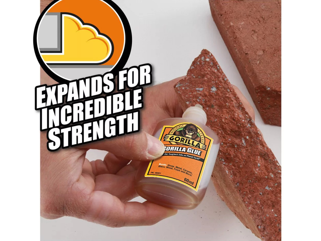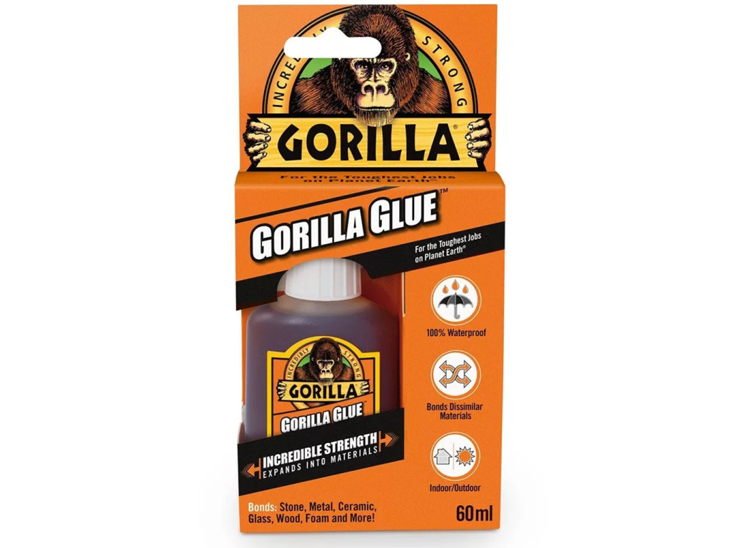 Gorilla Glue Original Polyuretánové Lepidlo 60 ml je ikonický produkt značky, známy svojou extrémnou silou a univerzálnosťou. Aktivuje sa vlhkosťou, počas tuhnutia sa 3–4-krát rozšíri a prenikne do materiálov, čím vytvára pevný, vodeodolný a poveternostne odolný spoj. Použiteľné na drevo, kov, kameň, keramiku, sklo a ďalšie materiály.* Po zaschnutí má žltkastú farbu a penovú štruktúru, ktorá vyplní nerovnosti a zabezpečí ešte pevnejší spoj.