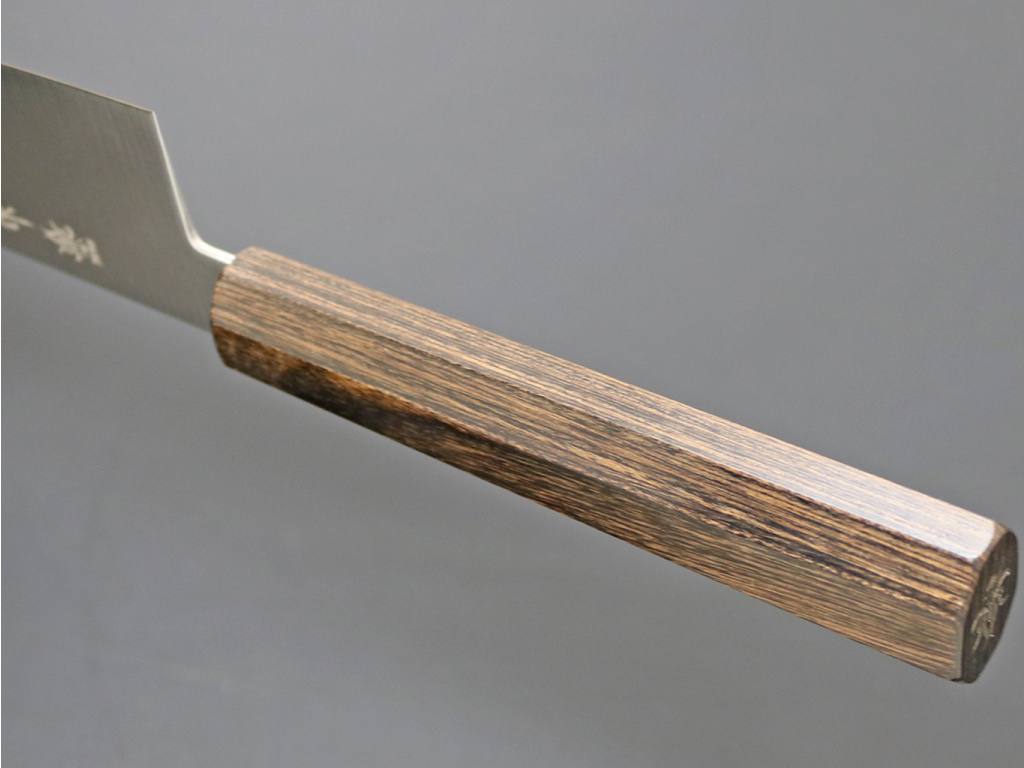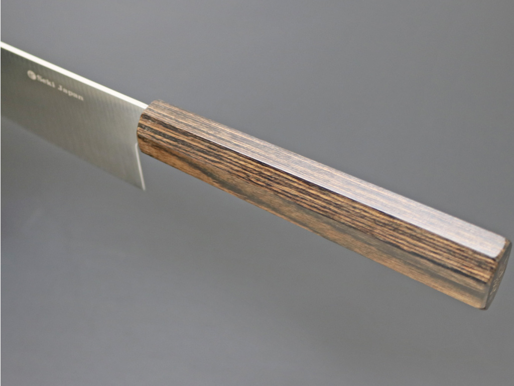 Najlepšia ostrosť od super zručných remeselníkov, ktorí majú plnú chuť vyrábať kuchynské nože v meste Seki. Japonská tradičná osemhranná rukoväť „八角柄 HAKKAKU-E“ je vyrobená z tmavohnedej preglejgy.