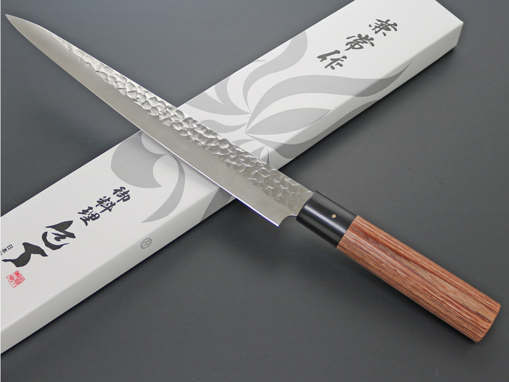 SUJIHIKI sú nože s dlhou a úzkou čepeľou, ktorá ľahko preniká krájaným materiálom. Vďaka svojej dĺžke umožňuje krájať jedným čistým rezom, ktorý zachováva čerstvosť krájaných potravín. SUJIHIKI je vždy obojstranne brúsený. Výbrone sa hodí na jemné krájanie plátkov mäsa, filetovanie rýb či rýchlejšie odstraňovanie šľachovitých častí mäsa.