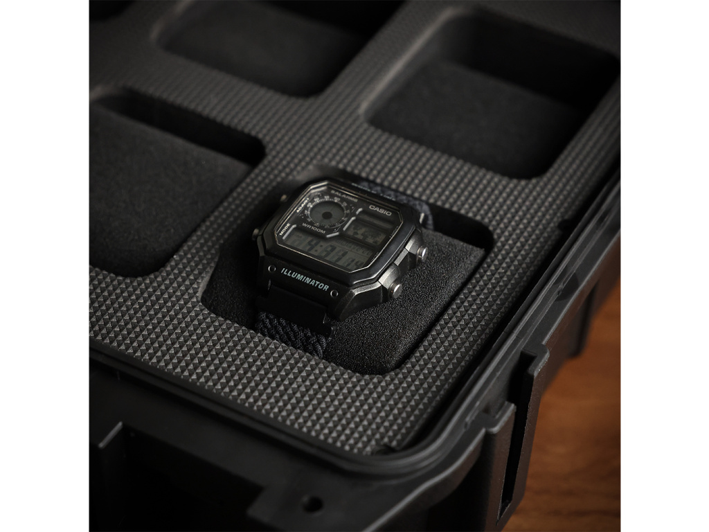 - Vynikajúca ochrana – Pena s vysokou hustotou a odolný vonkajší povrch chránia hodinky pred pádmi, vlhkosťou a škrabancami.