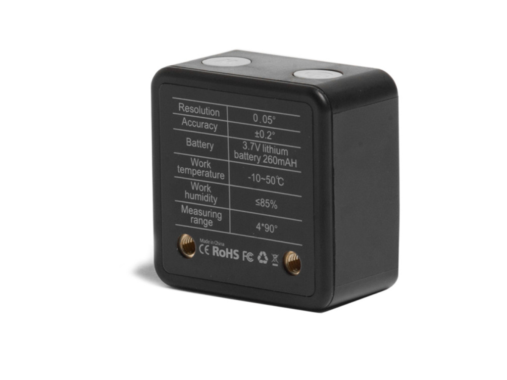 - Funkčnosť: Dva režimy merania (absolútny a relatívny uhol), fixácia aktuálnej hodnoty, automatické vypnutie, vstavané magnety pre upevnenie na kovových povrchoch.