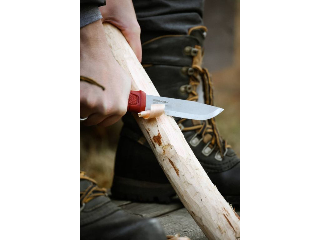 Švédska nehrdzavejúca oceľ so skandinávskym brúseným ostrím - čepeľ je vyrobená zo švédskej nehrdzavejúcej ocele (14C28N), hrubej 3,2 mm a kalenej na 58 HRC. Ponúka vynikajúcu fixáciu ostria, odolnosť proti korózii a nízku údržbu. Skandinávsky brús poskytuje pevnosť a kontrolu pri reze a ľahko sa ostrí v teréne.