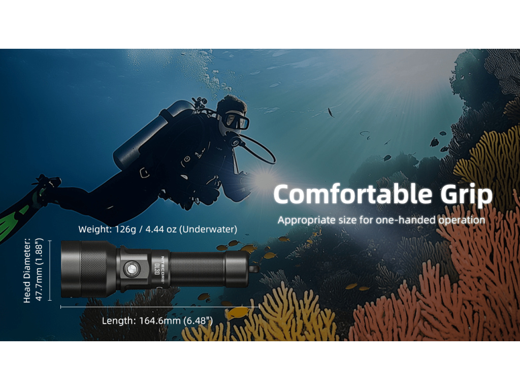 - Lúč dosahuje až 788m, čo je ideálne pre hlboké potápanie a podvodnú navigáciu.