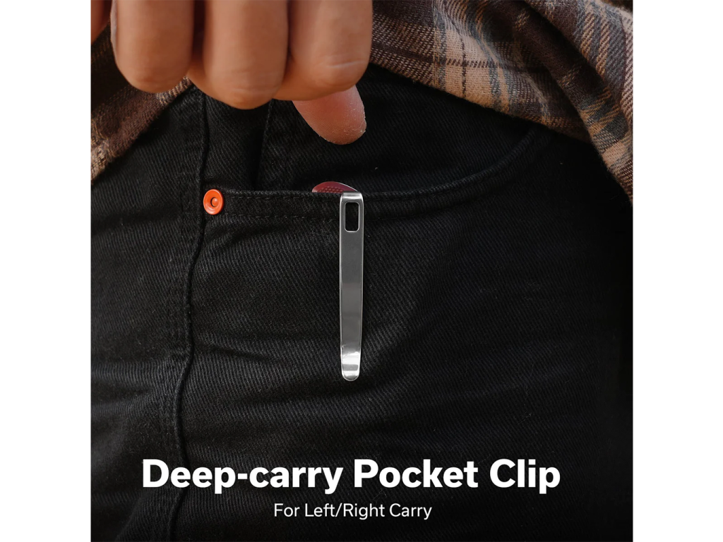 Tauron je navrhnutý pre jednoduché ovládanie jednou rukou pomocou kolíka alebo fliperu, čo Vám umožňuje rýchle a konzistentné použitie v rôznych situáciách úchopu. Štíhla a ľahká konštrukcia zaisťuje pohodlné nosenie vo vrecku, zatiaľ čo obojstranný klip na vrecko umožňuje nosenie na pravej alebo ľavej strane podľa vašich preferencií.