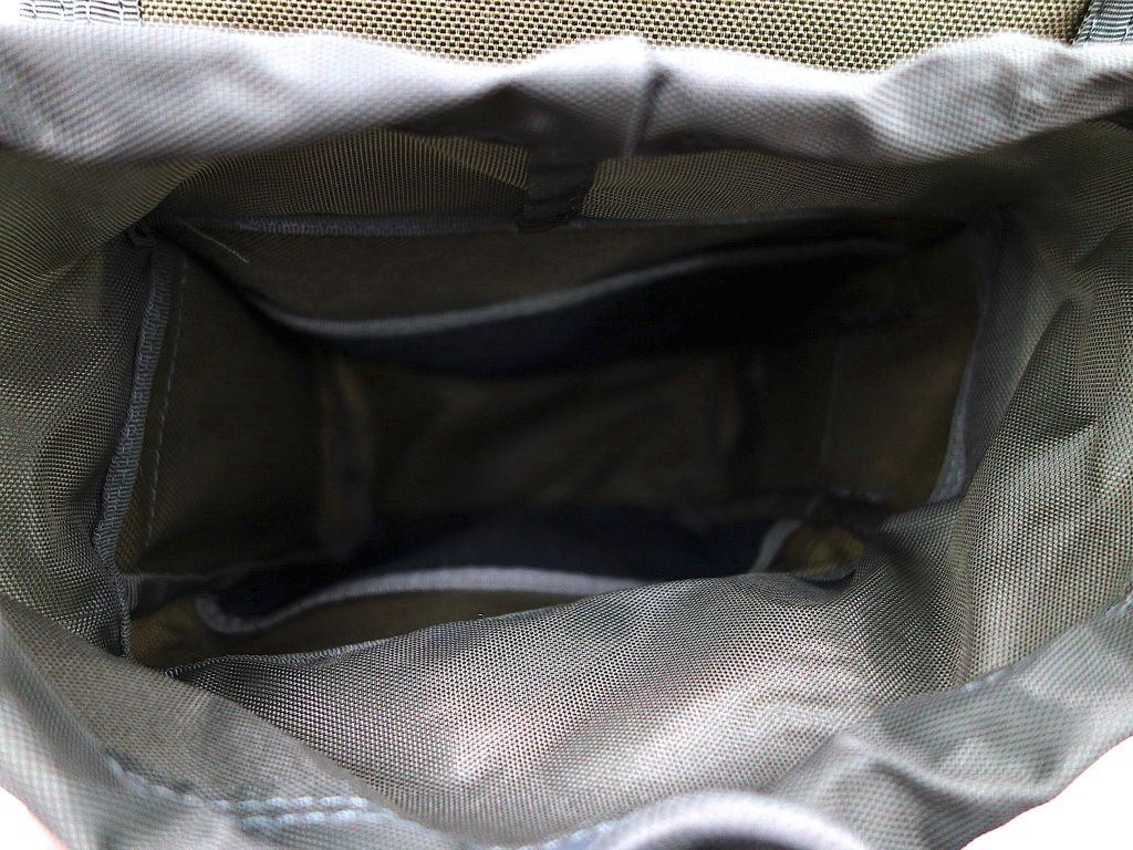 - Hlavná priehradka je vybavená sťahovacou šnúrkou na ochranu pred poveternostnými vplyvmi a predné vrecko s chlopňou zabezpečenou prackou pre bezpečné uloženie.