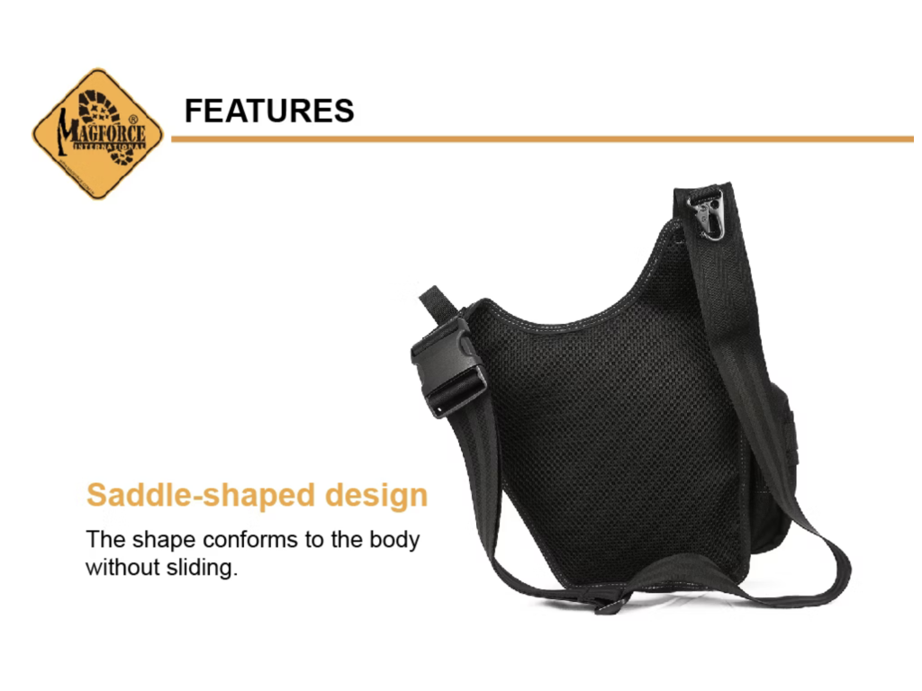 Magforce Maneuver Sling Bag (#0403) má dizajn v tvare sedla, ktorý poskytuje pohodlné nosenie pre vaše telo. V porovnaní s taškou Superma Sling Bag (#0411) je menšia a ľahšia, vďaka čomu je ideálna na ľahké každodenné nosenie.