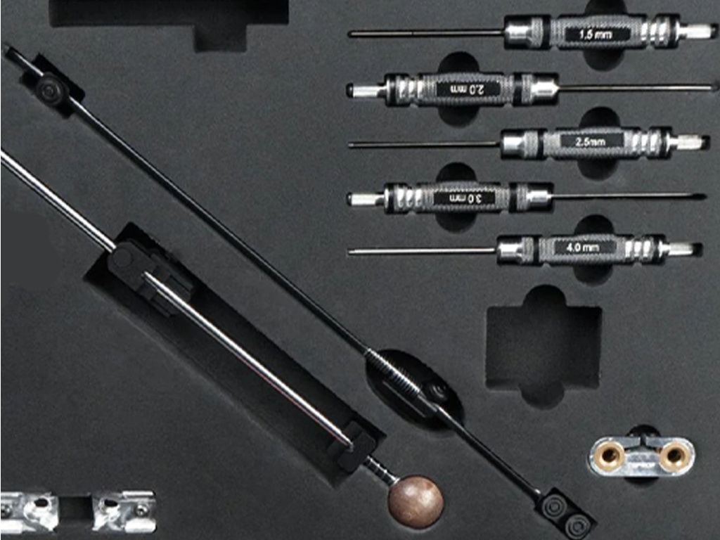 Zásadne nový spôsob upevnenia obmedzovačov a spojky na vodiacej tyči zaisťuje zvýšenú spoľahlivosť a nehybnosť prvkov počas prevádzky. Namiesto bodového upevnenia skrutkou sa teraz upevnenie dosahuje plošne pomocou valcových spojok s otvormi. Sila potrebná na upevnenie prvkov sa znížila a eliminovala sa možnosť poškodenia povrchu vodiacej tyče. Predný doraz vodiacej tyče umožňuje jednoduché odstránenie a inštaláciu brúsneho kameňa. Skrutka s pružnou guľôčkou nainštalovanou v doraze obmedzuje jeho voľné otáčanie na vodiacej tyči a zaisťuje plynulejší pohyb. Otočný kĺb využíva posuvný pár z nehrdzavejúcej ocele a mosadze, ktorý zaisťuje plynulý pohyb vodiacej tyče počas prevádzky.