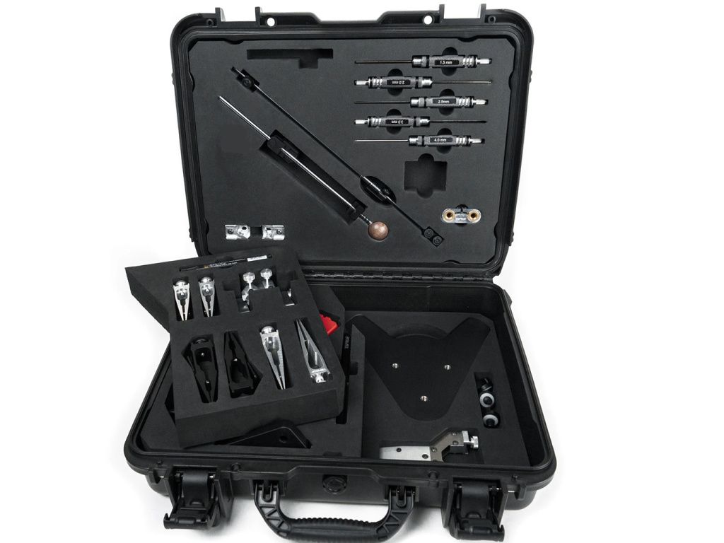 Dizajn stojana sa vyznačuje nielen moderným vzhľadom, ale poskytuje aj pohodlie pri prenášaní produktu, čo Vám umožňuje pohodlne držať zariadenie jednou rukou. Systém je pripevnený k frézovanej základni pomocou troch rýchloupínacích spojovacích prvkov, ktoré bezpečne upevňujú stojan systému k oceľovej doske. Vďaka svojmu tvaru, hmotnosti a tenkým, širokým tlmičom nárazov zostane systém počas ostrenia na tejto základni nehybný.