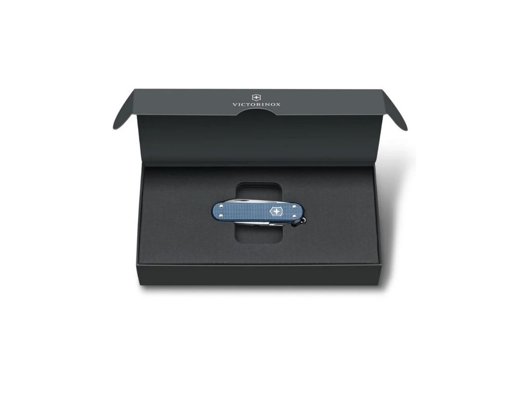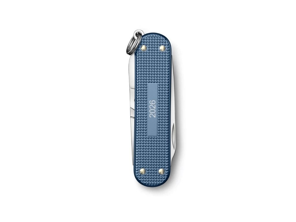 Vreckový multifunkčný zatvárací nôž Victorinox Classic SD Alox Limited Edition 2026 Glacial Blue 0.6221.L26 vhodný ako prívesok na kľúče, s veľkosťou 58 mm.