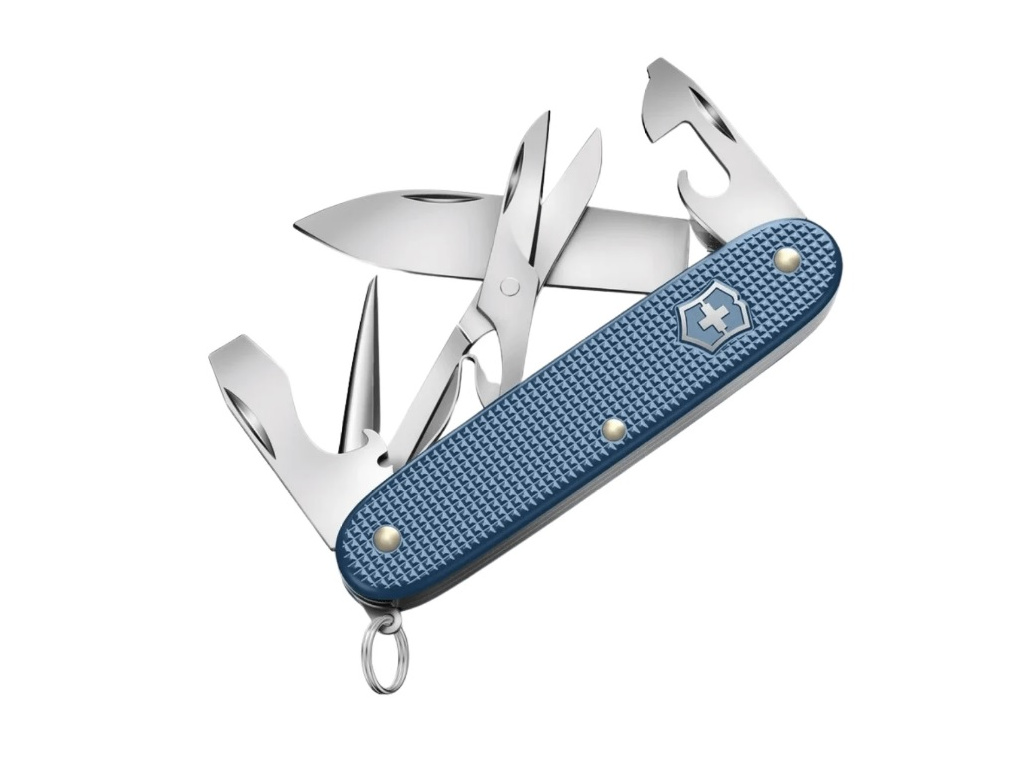 Vreckový zatvárací nôž Victorinox Pioneer X Alox 0.8231.L26 je limitovaná verzia za rok 2026 v Glacial Blue farebnom prevedení, stelesňuje dôvtip sveta prírody, vo veľkosti 93 mm, vhodný ako prívesok na kľúče.