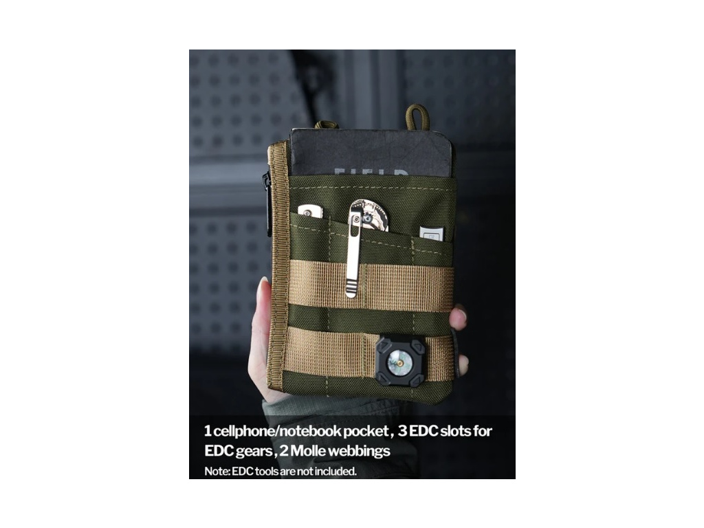 Malé multifunkčné puzdro na náradie má 3 samostatné vrecká na malé vreckové nože, taktické perá a ďalšie drobné EDC predmety.