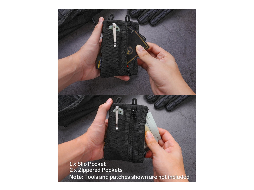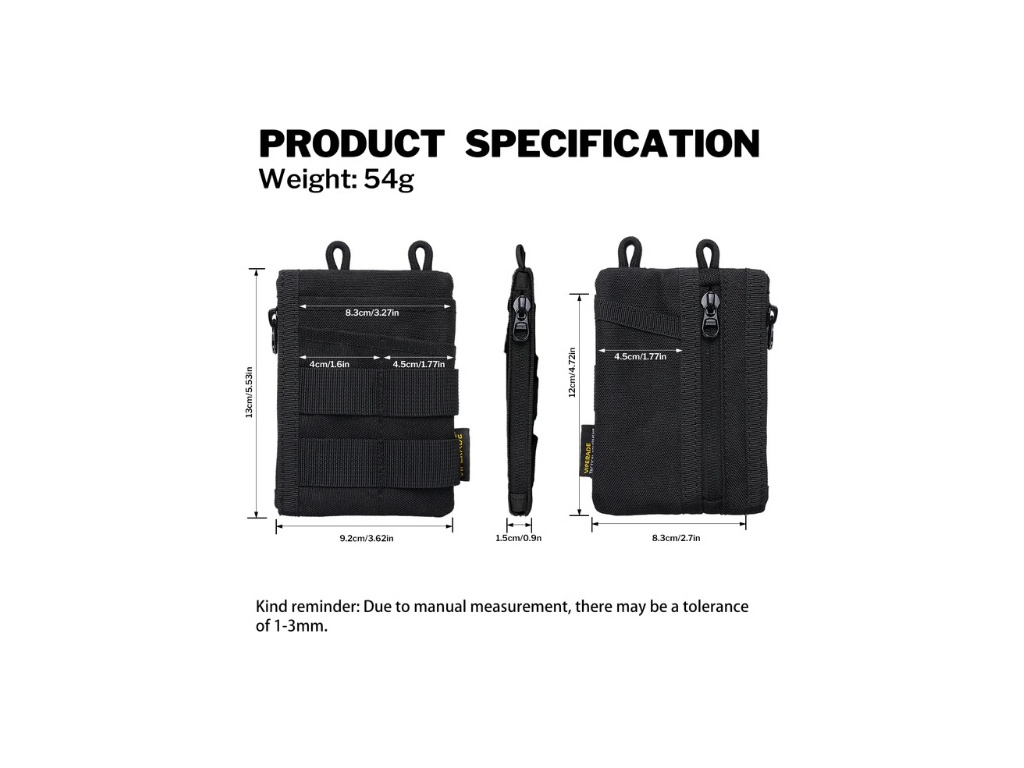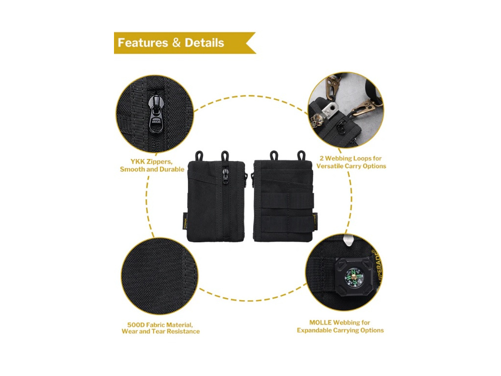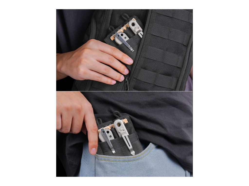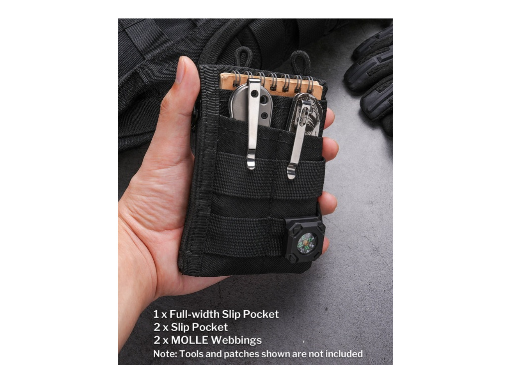 Obsahuje 1 vrecko po celej šírke, 2 vnútorné otvory a 2 popruhy MOLLE na úhľadné uloženie nožov, pier, páčidiel alebo malých zápisníkov pre rýchly prístup.