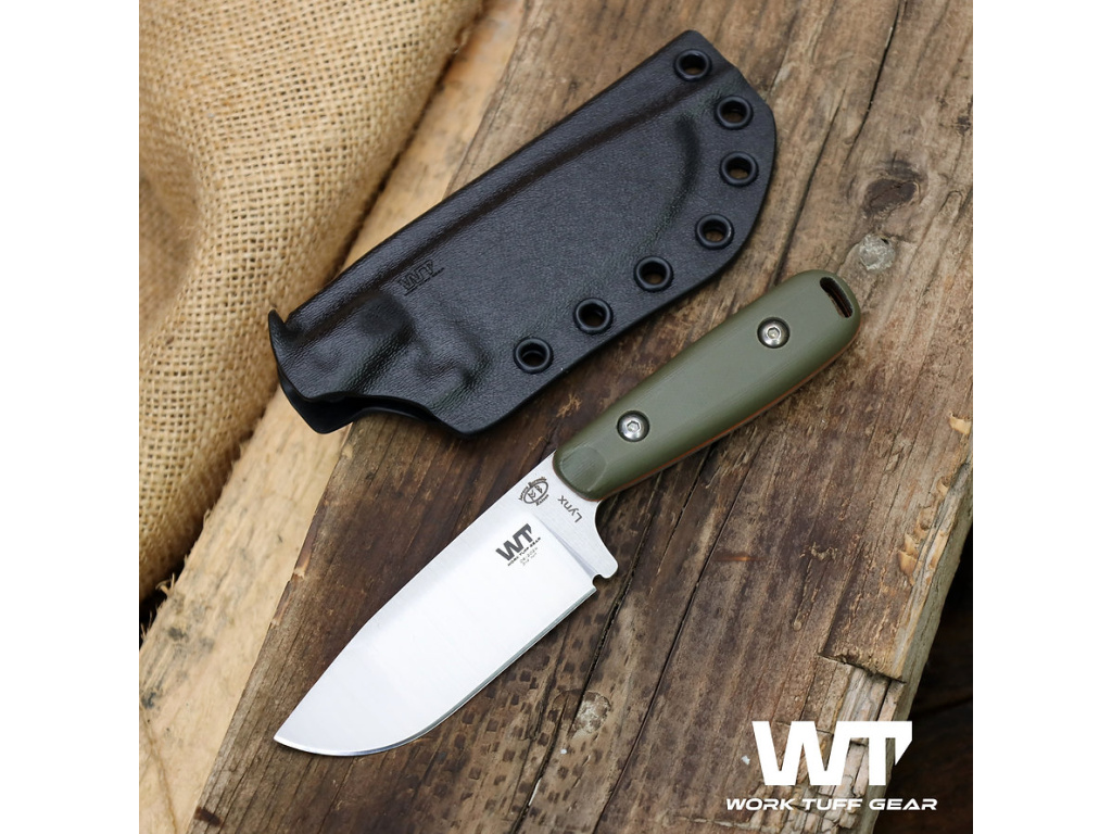 Work Tuff Gear Lynx je kompaktný nôž s pevnou čepeľou určený na náročné vonkajšie použitie. Nože Lynx, navrhnuté spoločnosťou Aurora Borealis Knives, ponúkajú všestrannosť väčšej čepele a zároveň si zachovávajú prenosnú veľkosť, vďaka čomu sú ideálne na úlohy od ľahkého batoningu až po vyrezávanie pierok.
