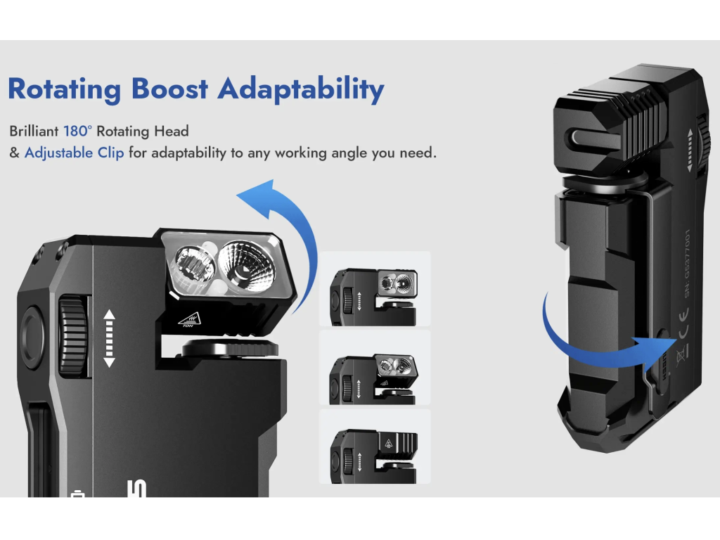- Plynulé stmievanie: Zabudnite na 3 pevné režimy. Otočný volič = nekonečné nastavenie od 2 do 400 lúmenov. Presne toľko svetla, koľko potrebujete. Nič viac, nič menej.