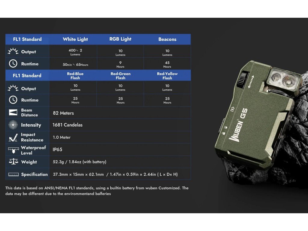 - 400 lúmenov v 52 gramoch: Väčšie baterky s rovnakým výkonom vážia 150-200g. G5 ECL váži menej ako priemerný smartfón, ale je výkonnejšia než väčšina vreckových bateriek.