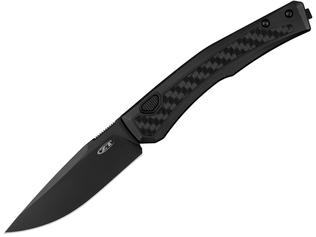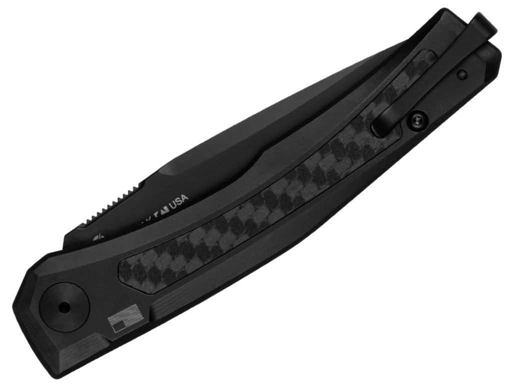 - Automatický skladací nôž vyrobený v USA s celočiernou prémiovou povrchovou úpravou